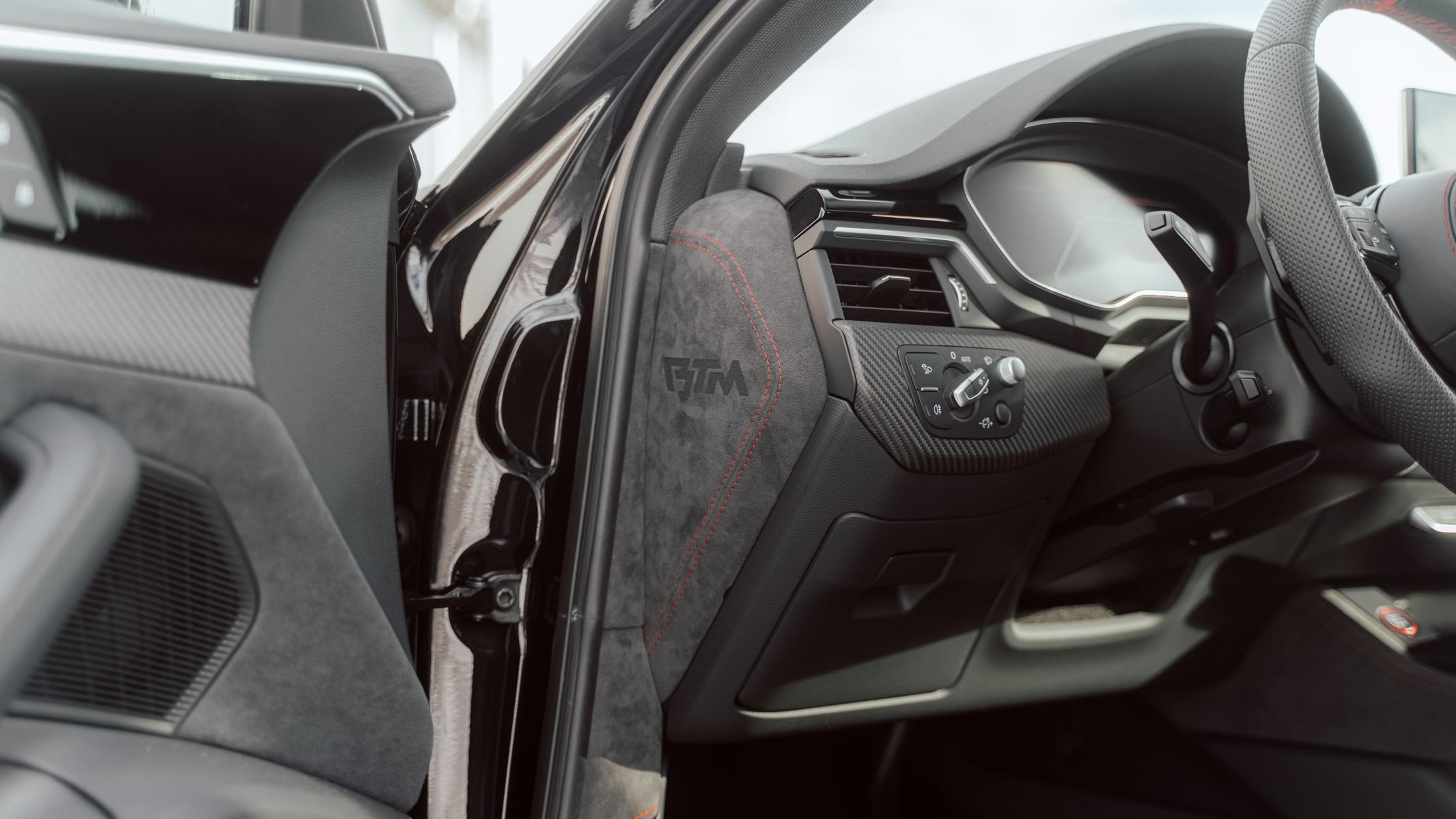- Armaturenbrettverkleidungen seitlich in Alcantara mit "BTM" Schriftzug und Doppelziernaht (Nahtfarbe passend zum Interieur wählbar)